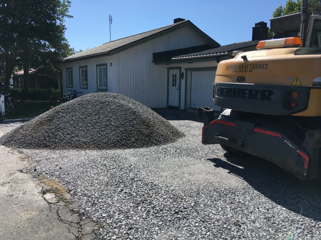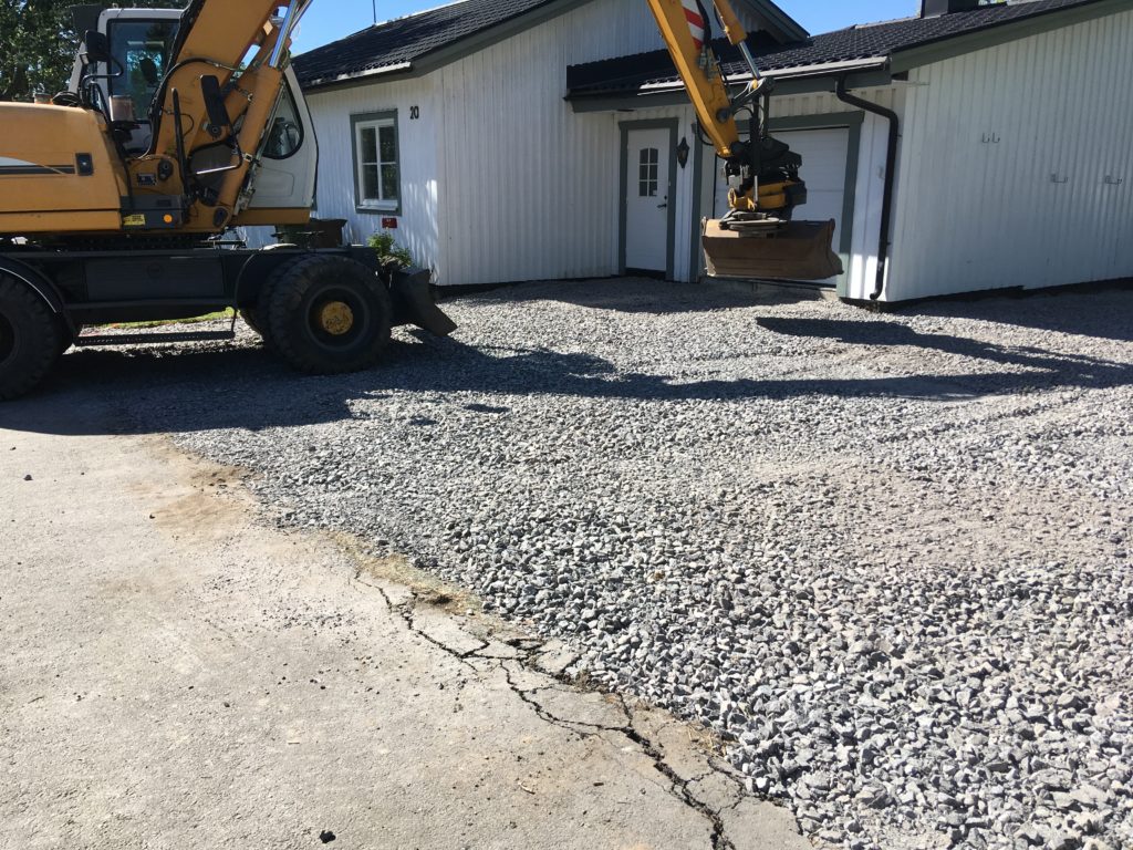 Vi kör ut materialet direkt till er tomt och hjälper till att planera, jämna ut och forma ytorna så att resultatet blir stabilt och redo för nästa steg i projektet.